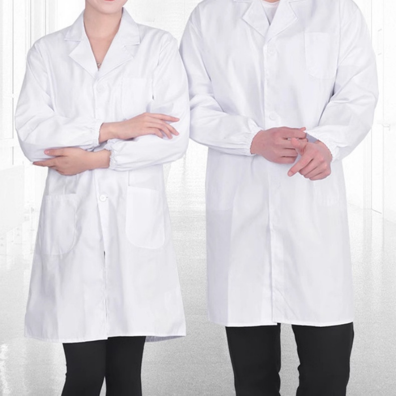 扛油拒水抗静电纽扣长袖白大褂大学生实验服男女同款