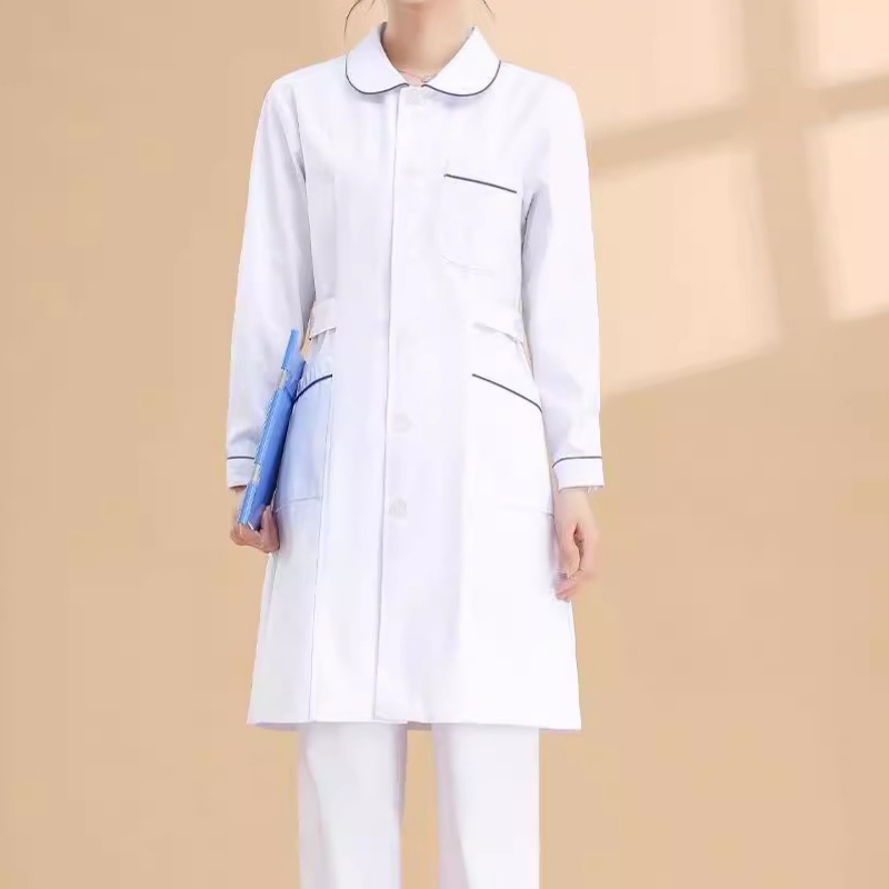 上下圆领女白大褂护士服套装长袖医院美容院药店工作服