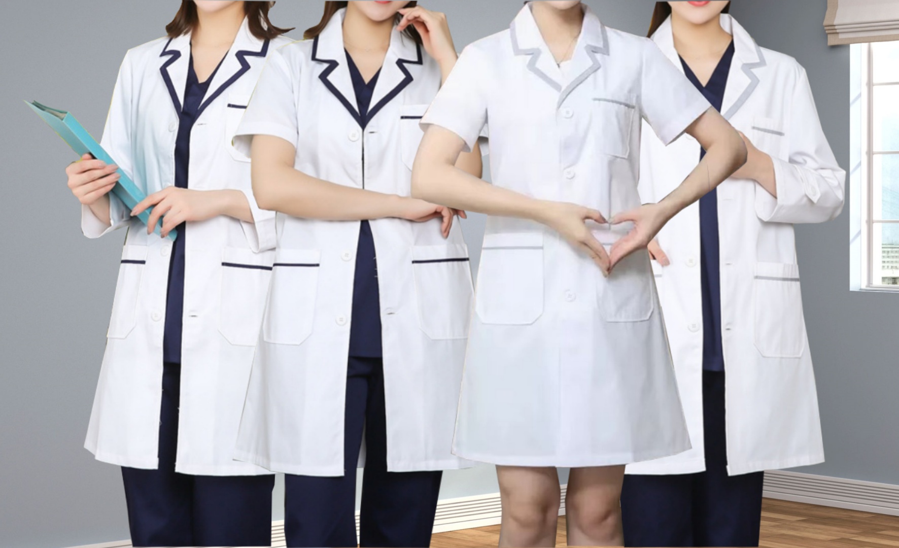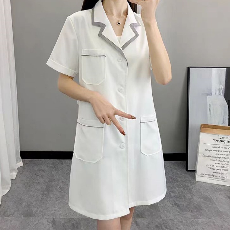韩版白大褂 女款 蓝色/灰色 翻领 长短袖