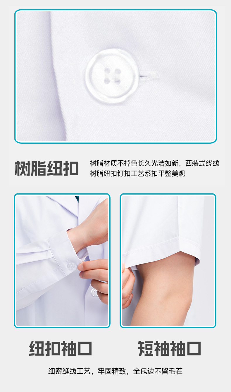 蓝边白大褂短袖医生工作服药厂学生实验服短袖男女