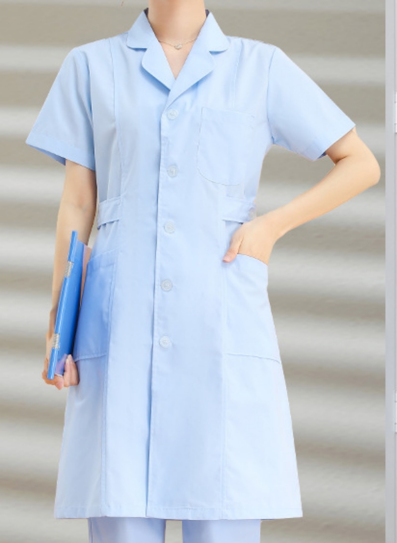 长款护士服 女款 短袖 葫芦领 蓝粉