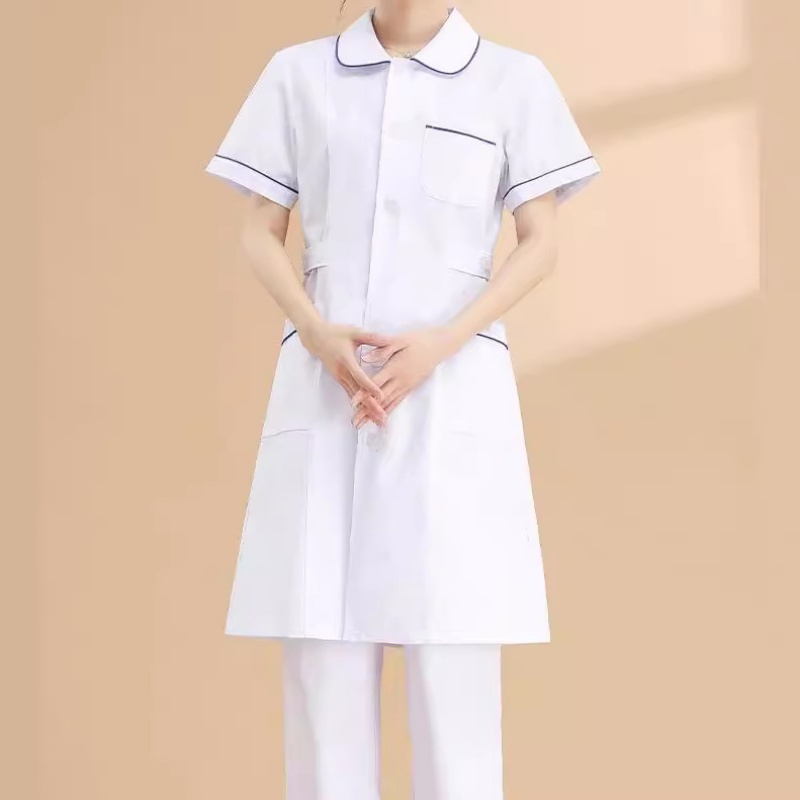 上下圆领女白大褂护士服套装长袖医院美容院药店工作服