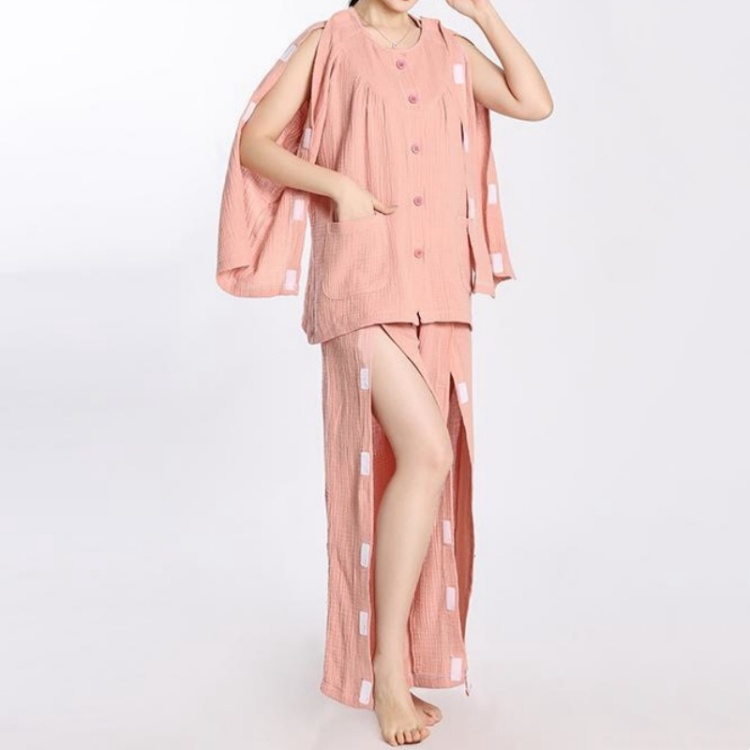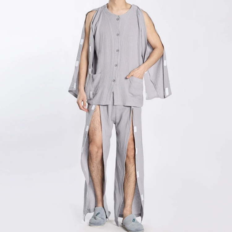 春秋款易穿脱护理服魔术贴款卧床老人睡衣针灸理疗服骨折术后病号