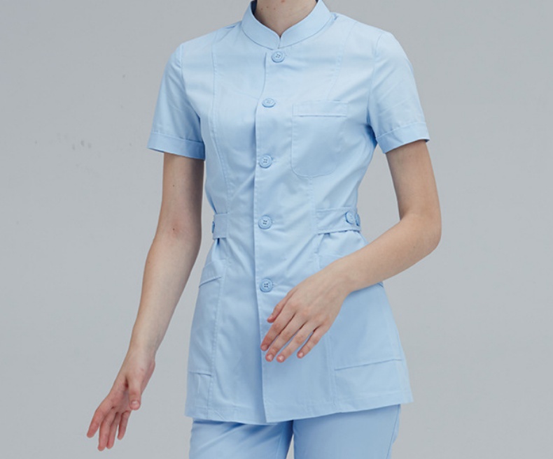 护士服偏襟圆领白色长袖冬装修身牙科美容院牙科蓝色粉色工作服