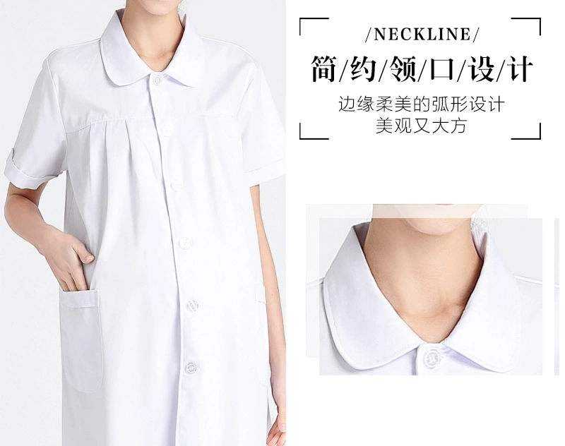 娃娃领护士服长袖长款女白色医院美容服药店工作服白大褂医生