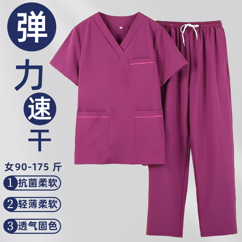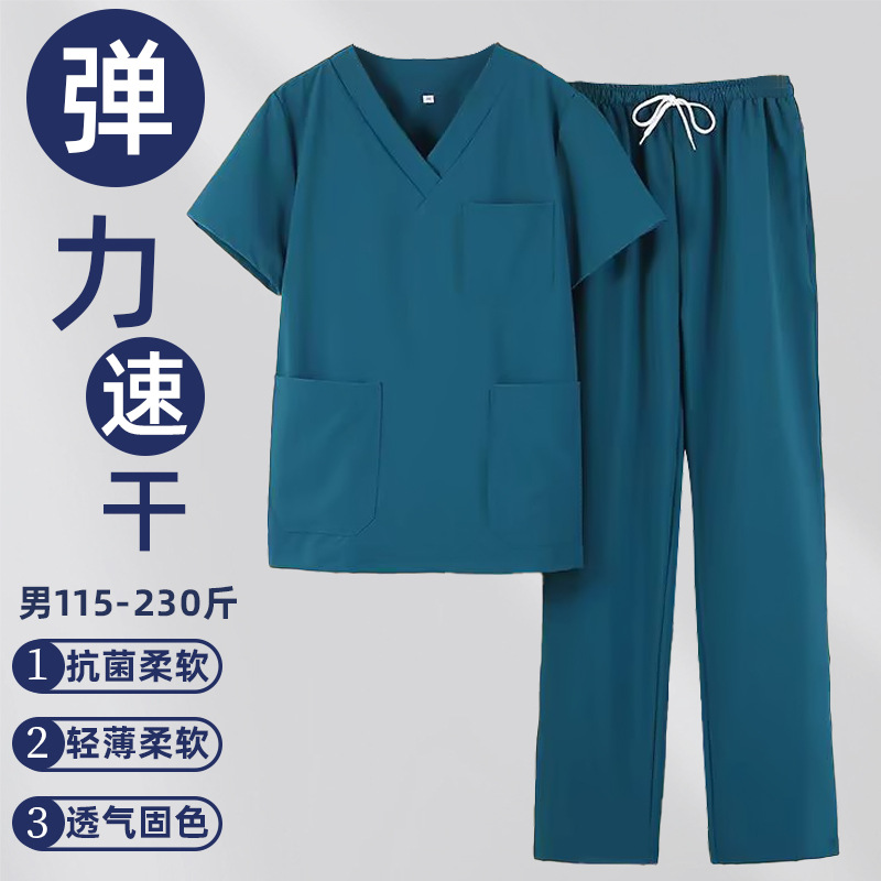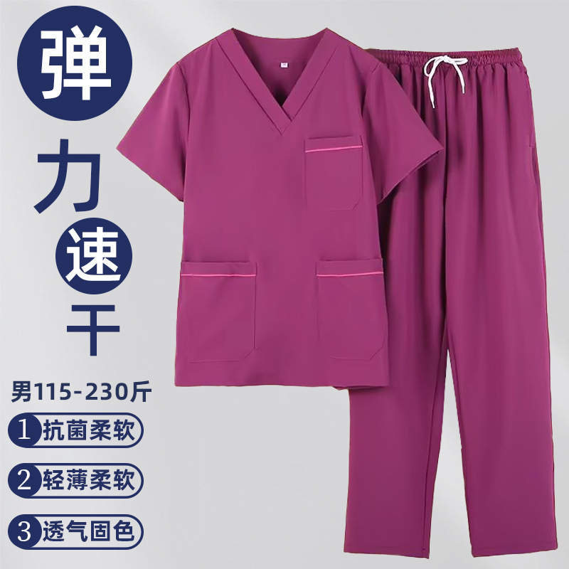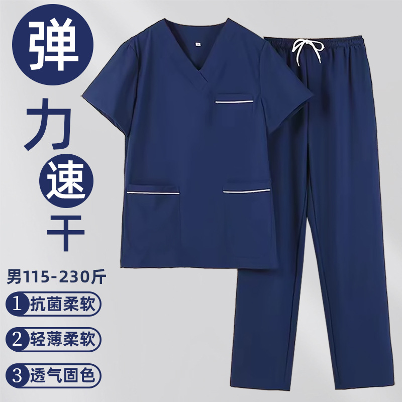 高端弹力速干洗手衣短袖手术室刷手衣牙科口腔宠物医院工作服