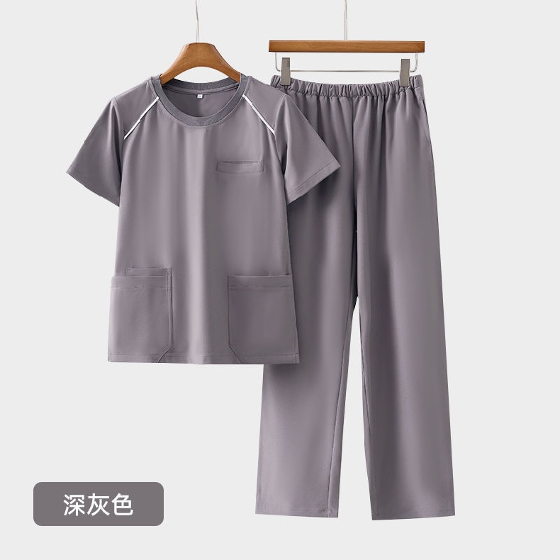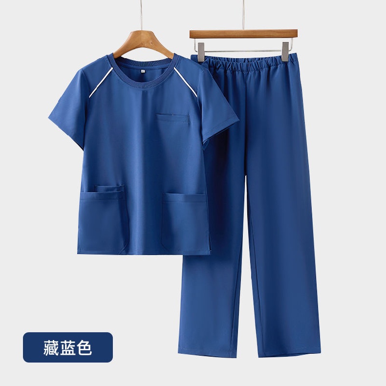 工作服弹力速干洗手衣套装男女夏季短袖美容院螺纹圆领医院刷手服